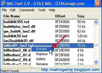Untuk mengganti gambarnya, tinggal kita extract dulu file txd seperti yang disebutkan diatas dari file GTA3.IMG dengan menggunakan IMGTool.